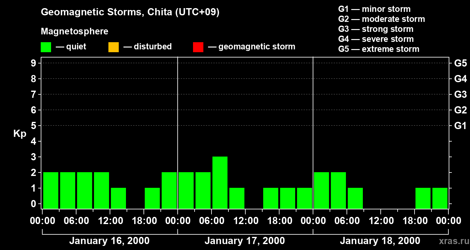 Changes in the geomagnetic index Kp from January 16 to 18, 2000 for mid latitudes