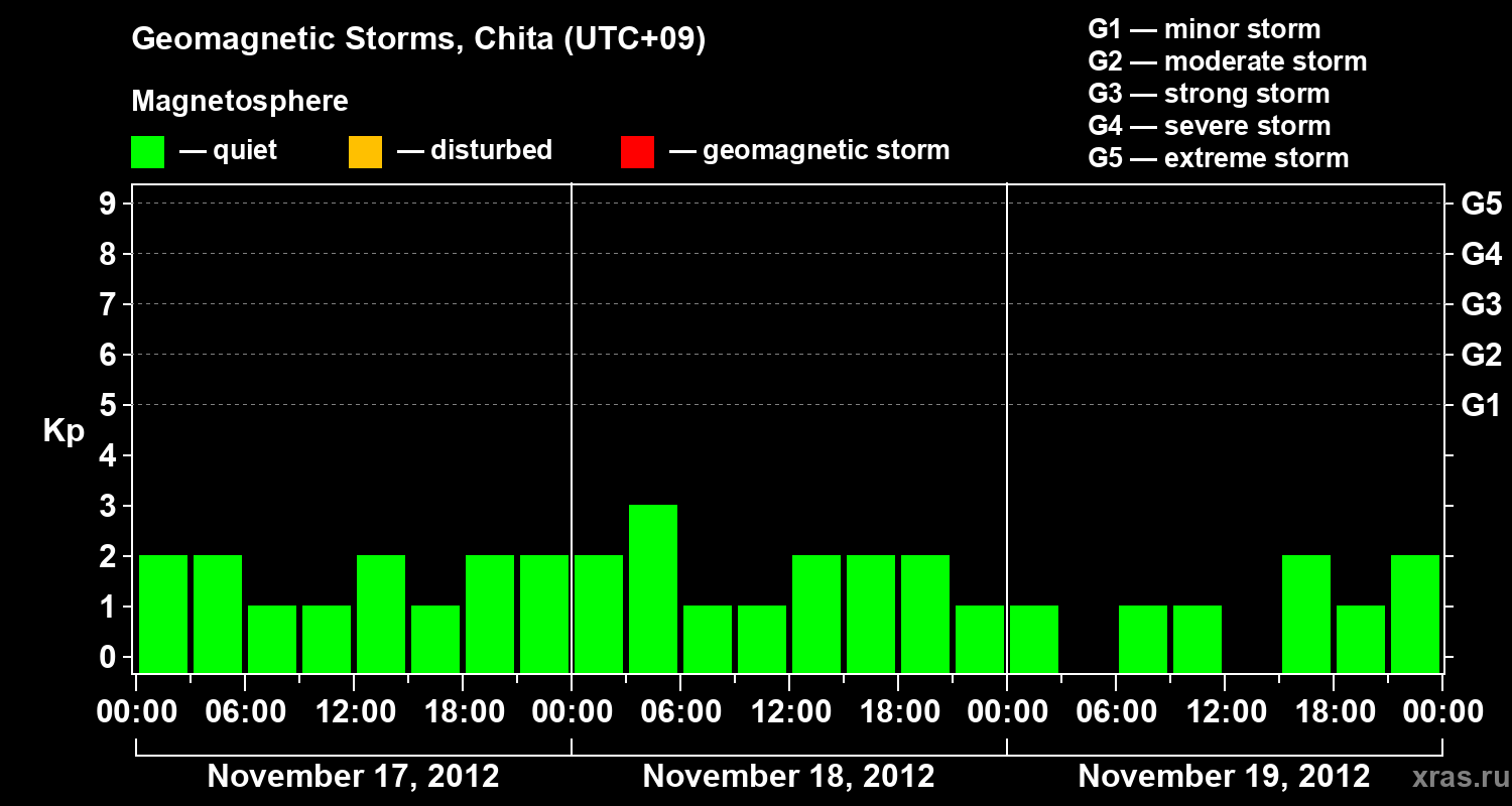 Changes in the geomagnetic index Kp from November 17 to 19, 2012 for mid latitudes