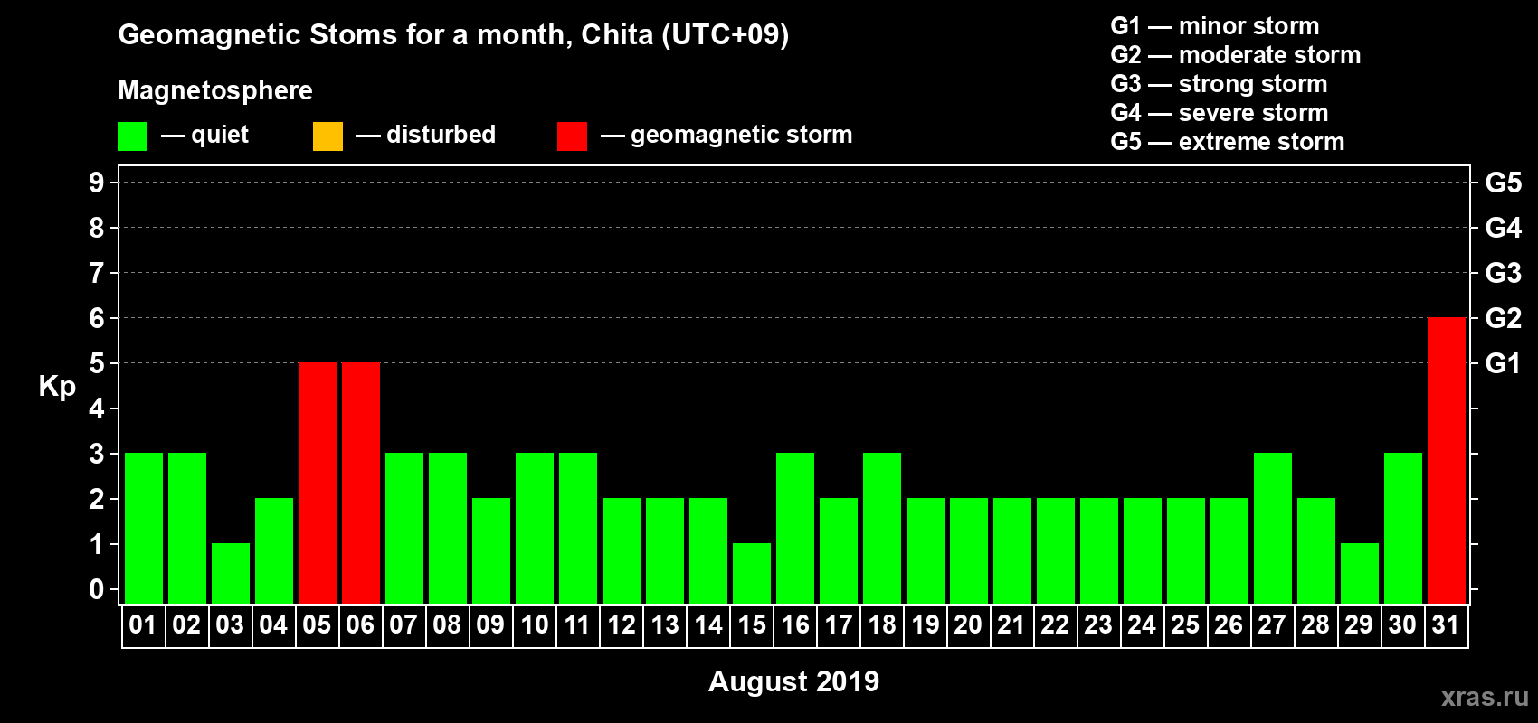 31 August 2019 — Magnetic storm of level G2