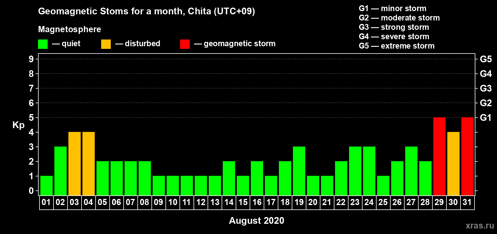 31 August 2020 — Magnetic storm of level G1