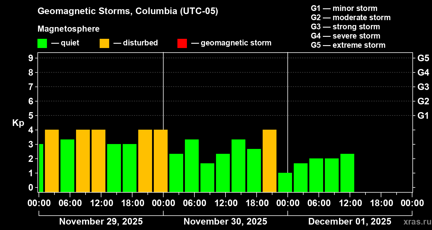 Geomagnetic storms in Columbia on Dec 01, 2025