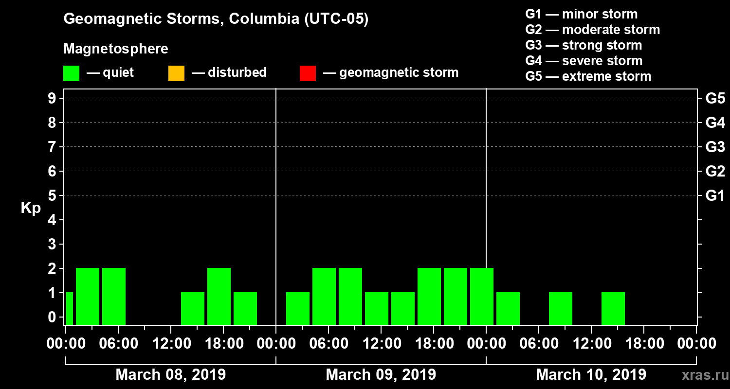 Geomagnetic storms in Columbia on Mar 10, 2019