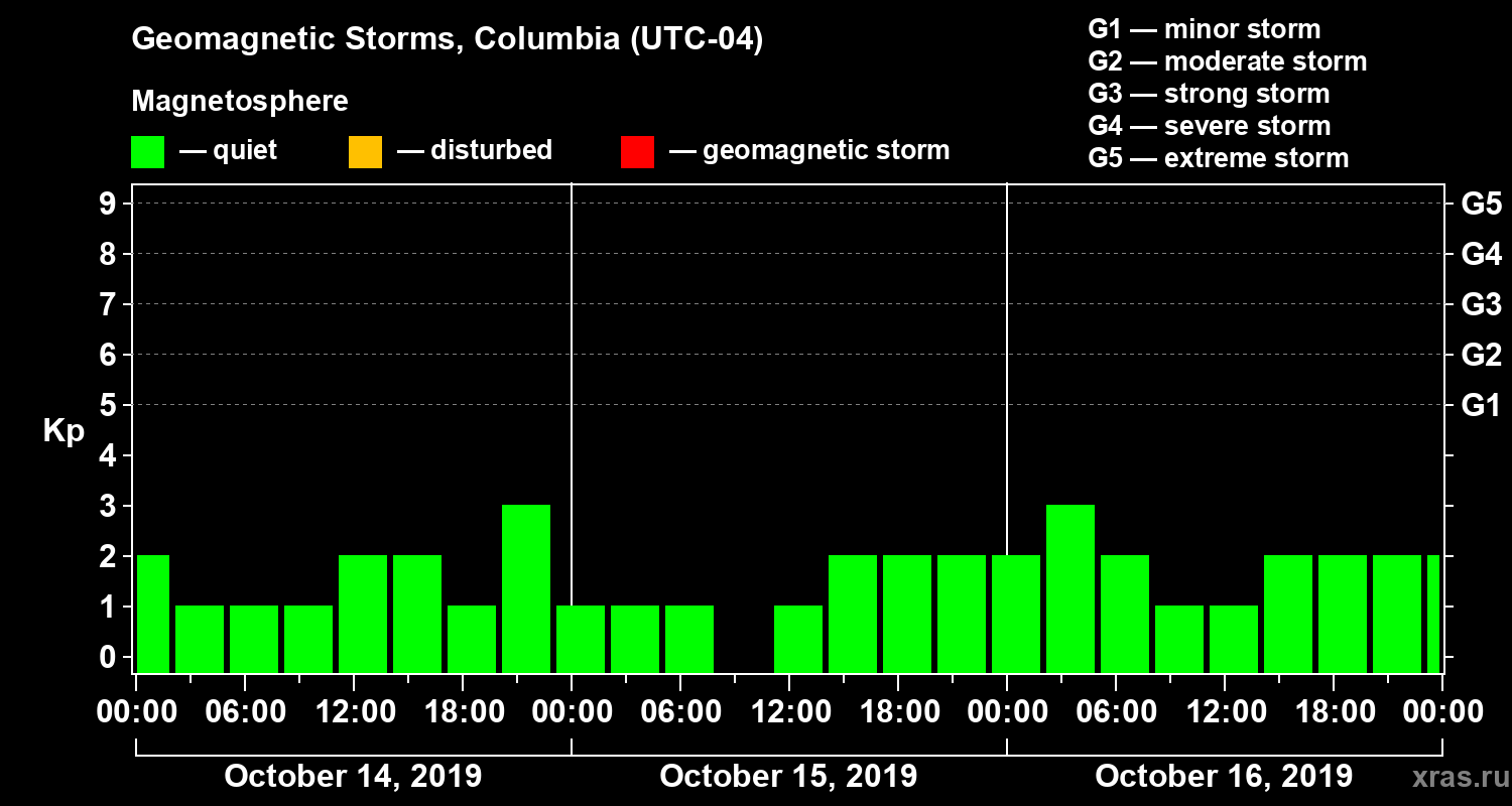 Geomagnetic storms in Columbia on Oct 16, 2019