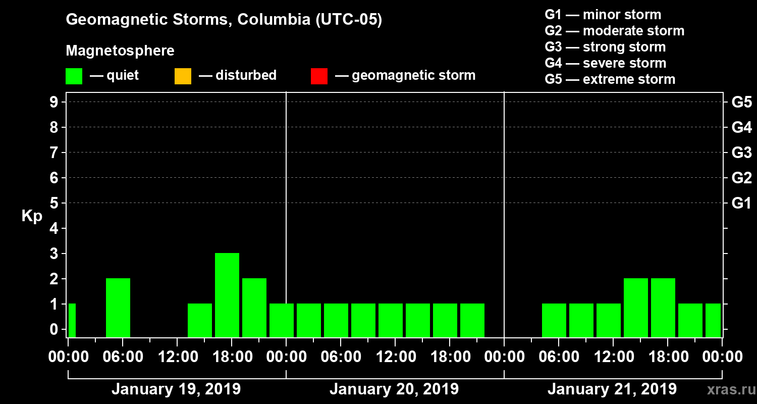 Geomagnetic storms in Columbia — Jan 21, 2019