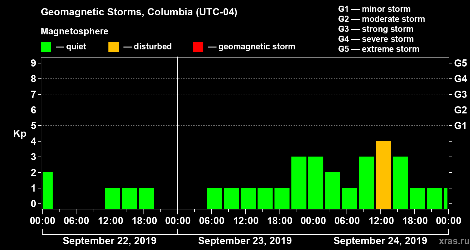 Geomagnetic storms in Columbia — Sep 24, 2019