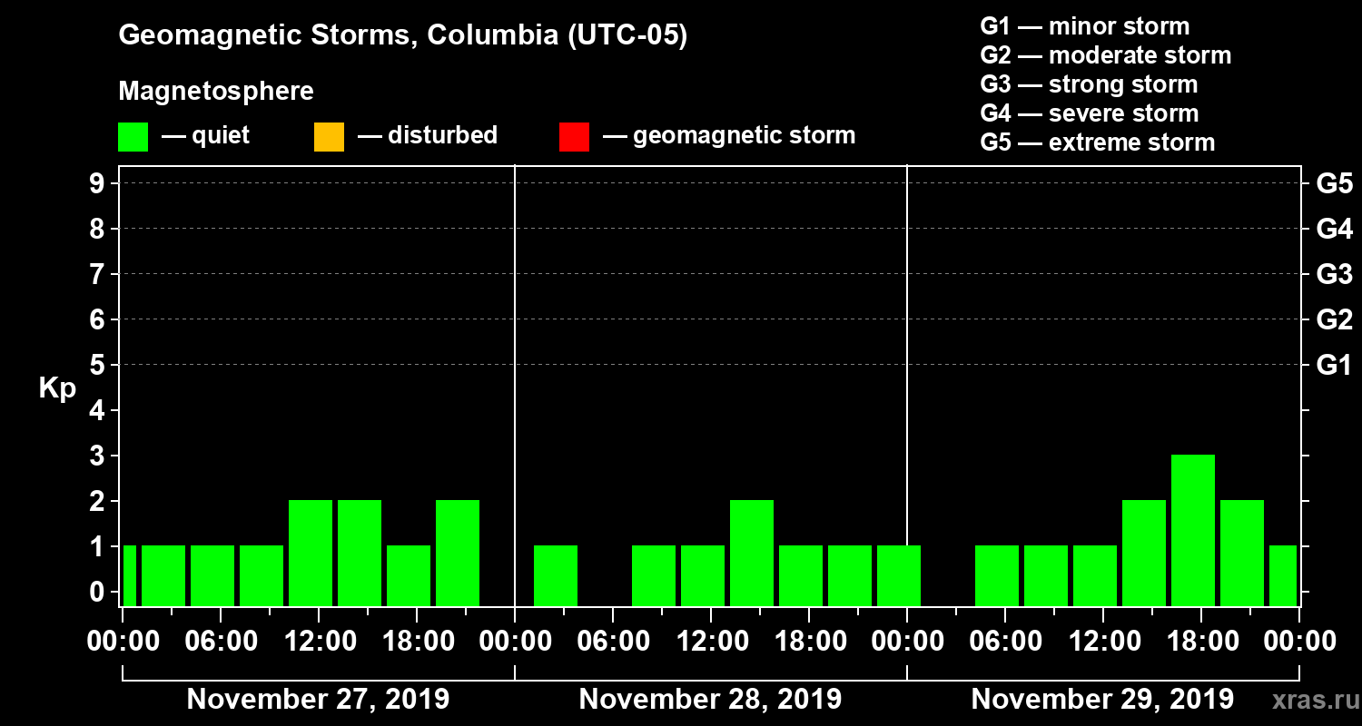 Geomagnetic storms in Columbia — Nov 29, 2019