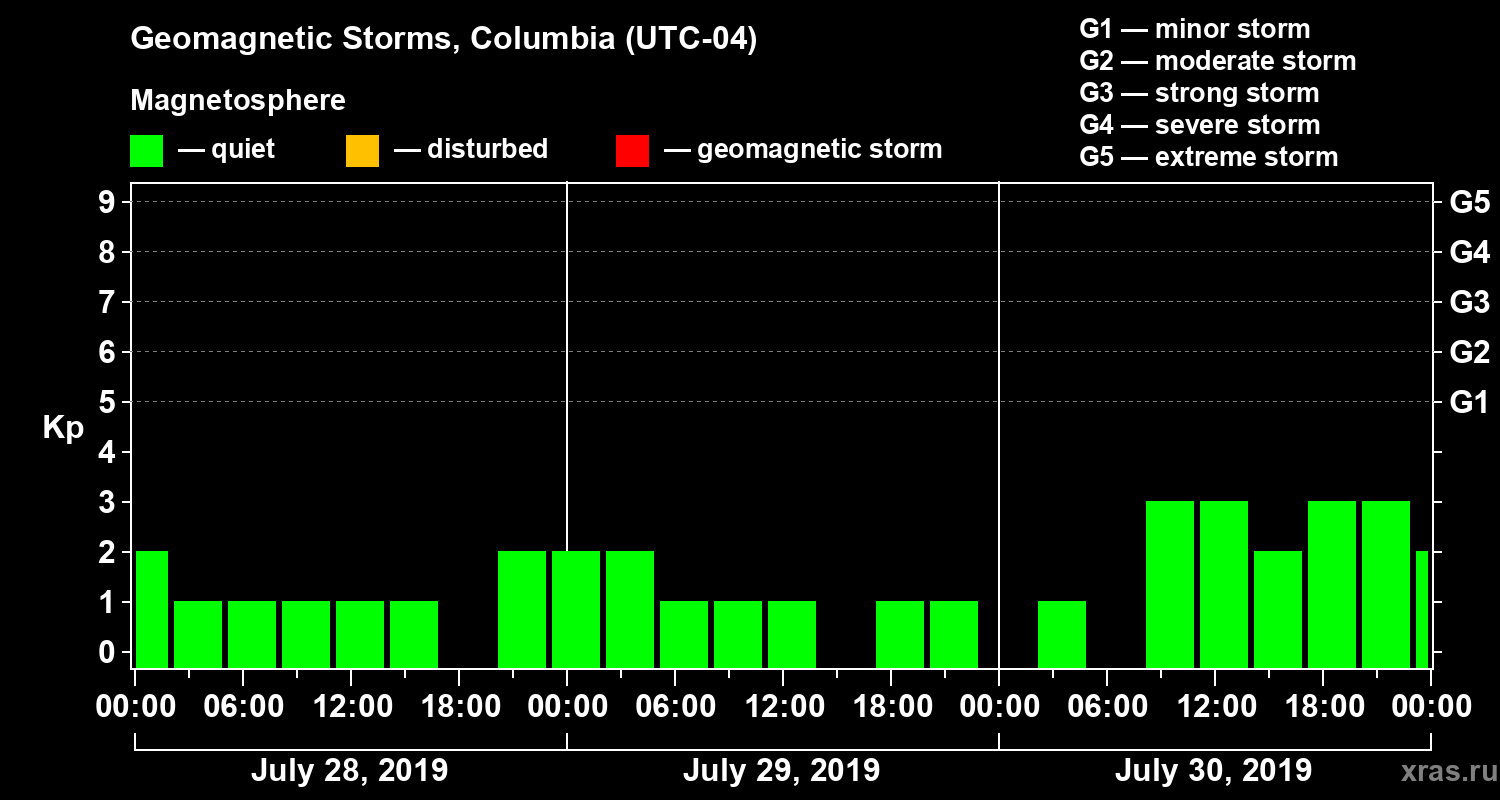 Geomagnetic storms in Columbia — Jul 30, 2019