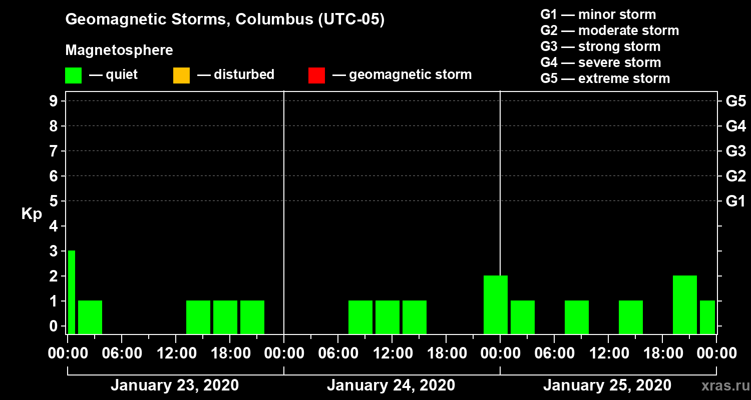 Geomagnetic storms in Columbus in January 2020