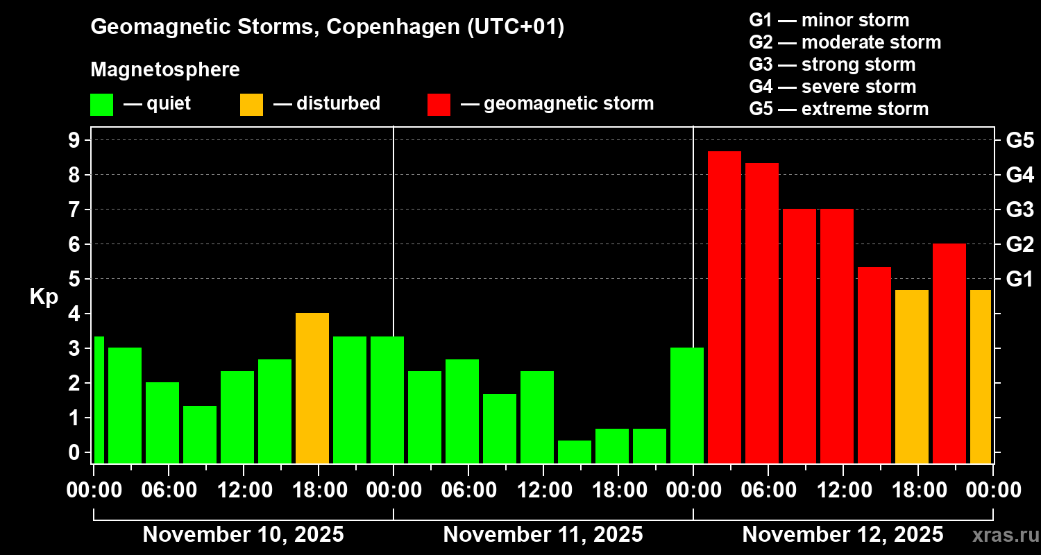 Geomagnetic storms in Copenhagen — Nov 12, 2025