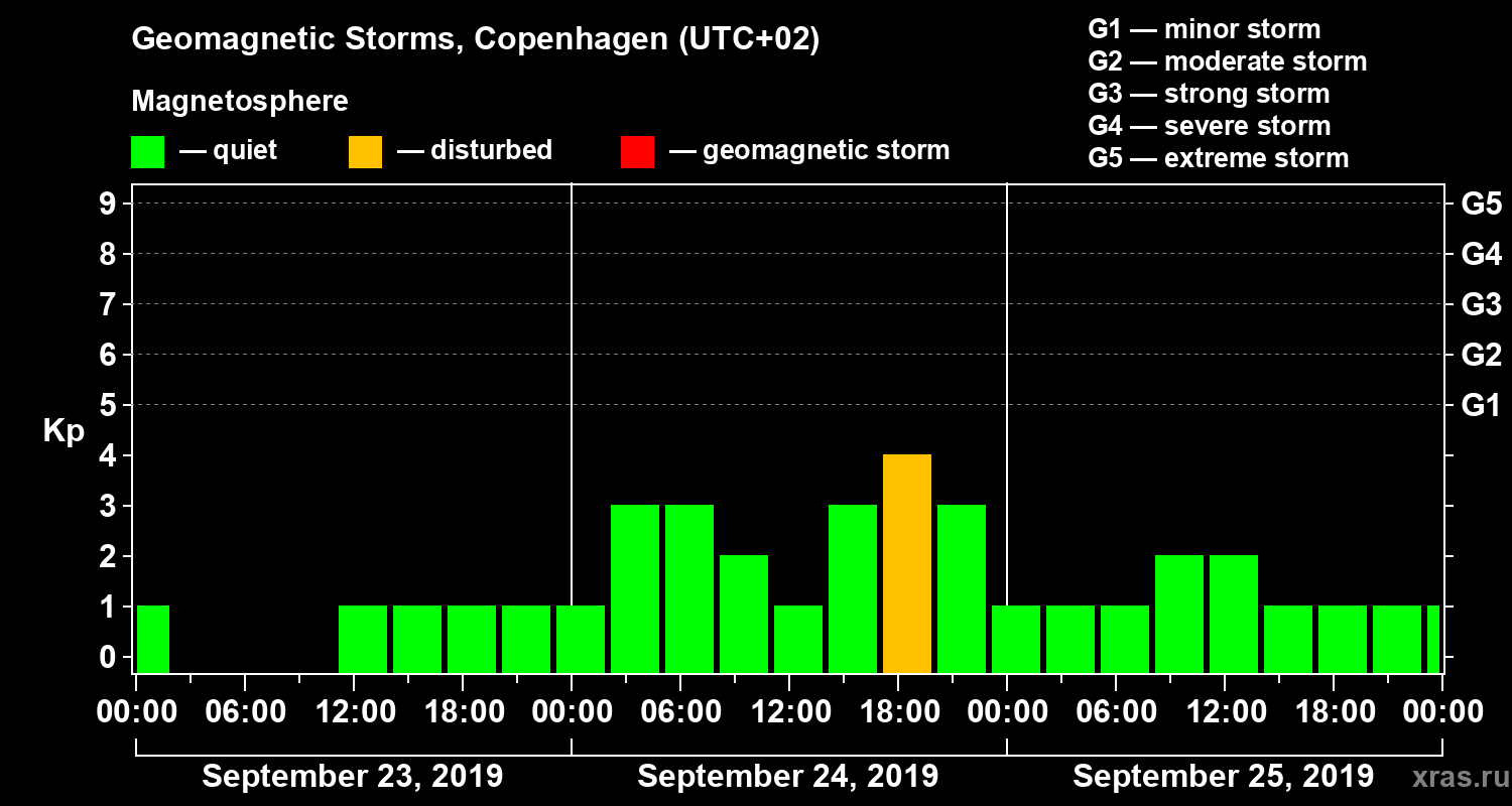 Geomagnetic storms in Copenhagen on Sep 25, 2019