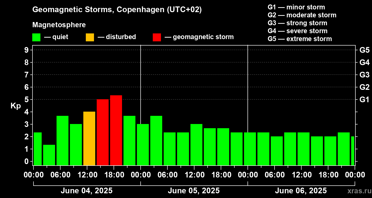 Geomagnetic storms in Copenhagen on Jun 06, 2025
