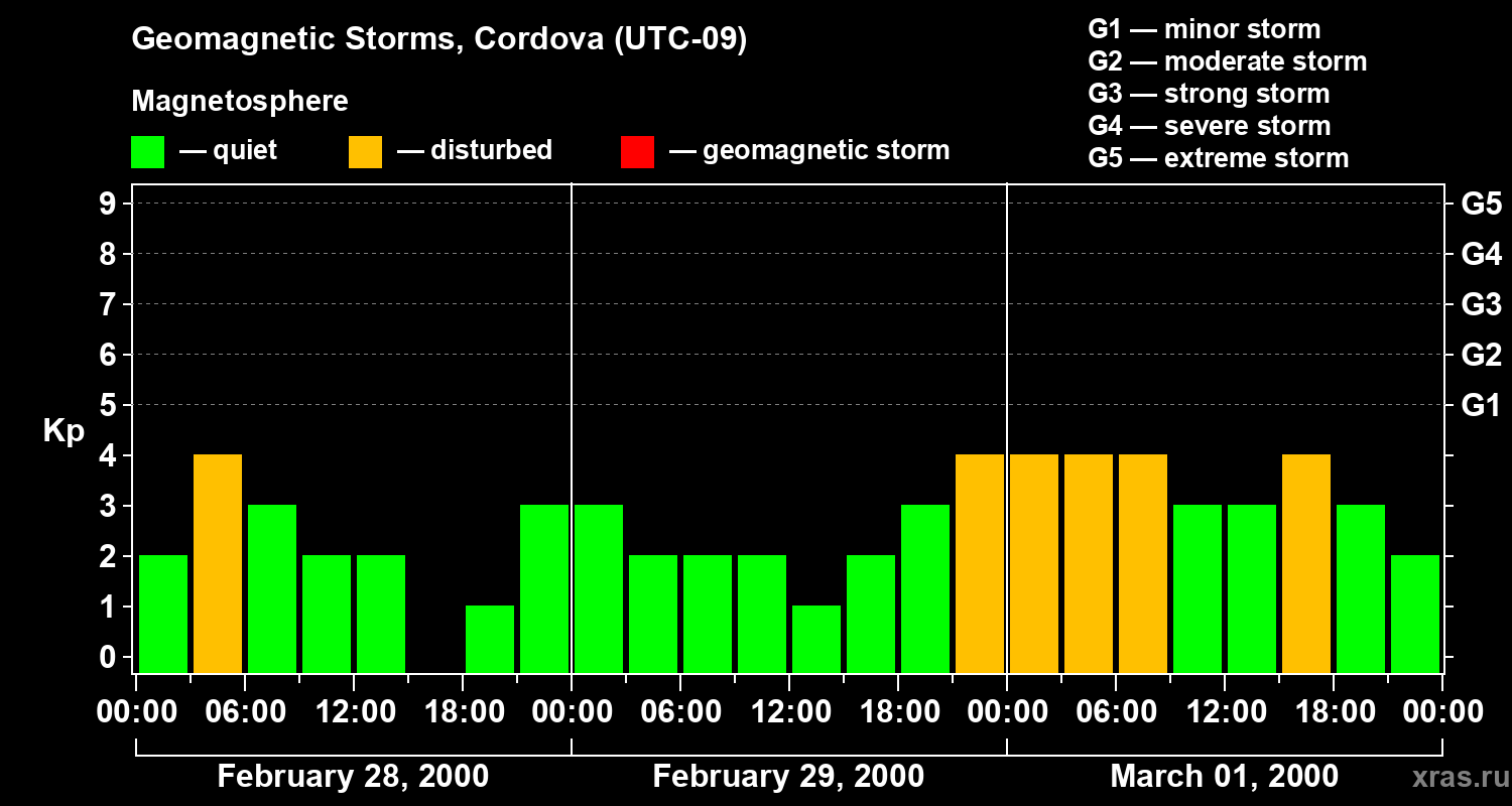 Geomagnetic storms in Cordova — Mar 01, 2000