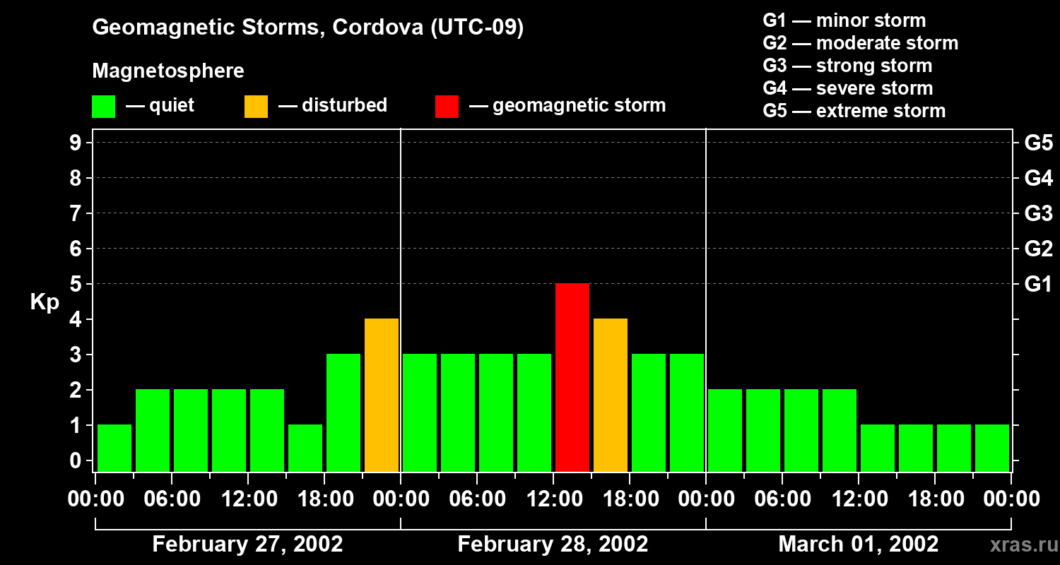 Geomagnetic storms in Cordova — Mar 01, 2002