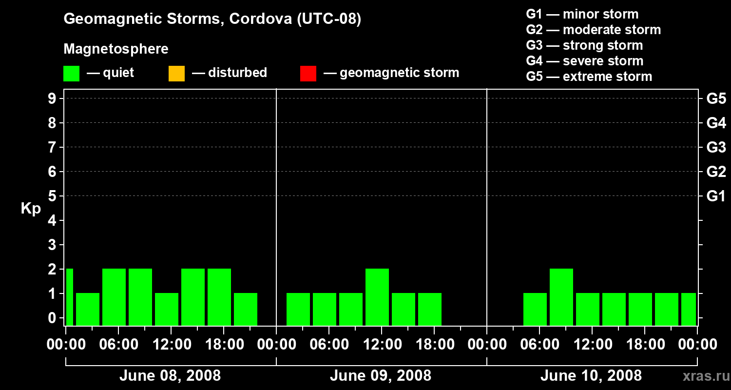 Geomagnetic storms in Cordova — Jun 10, 2008