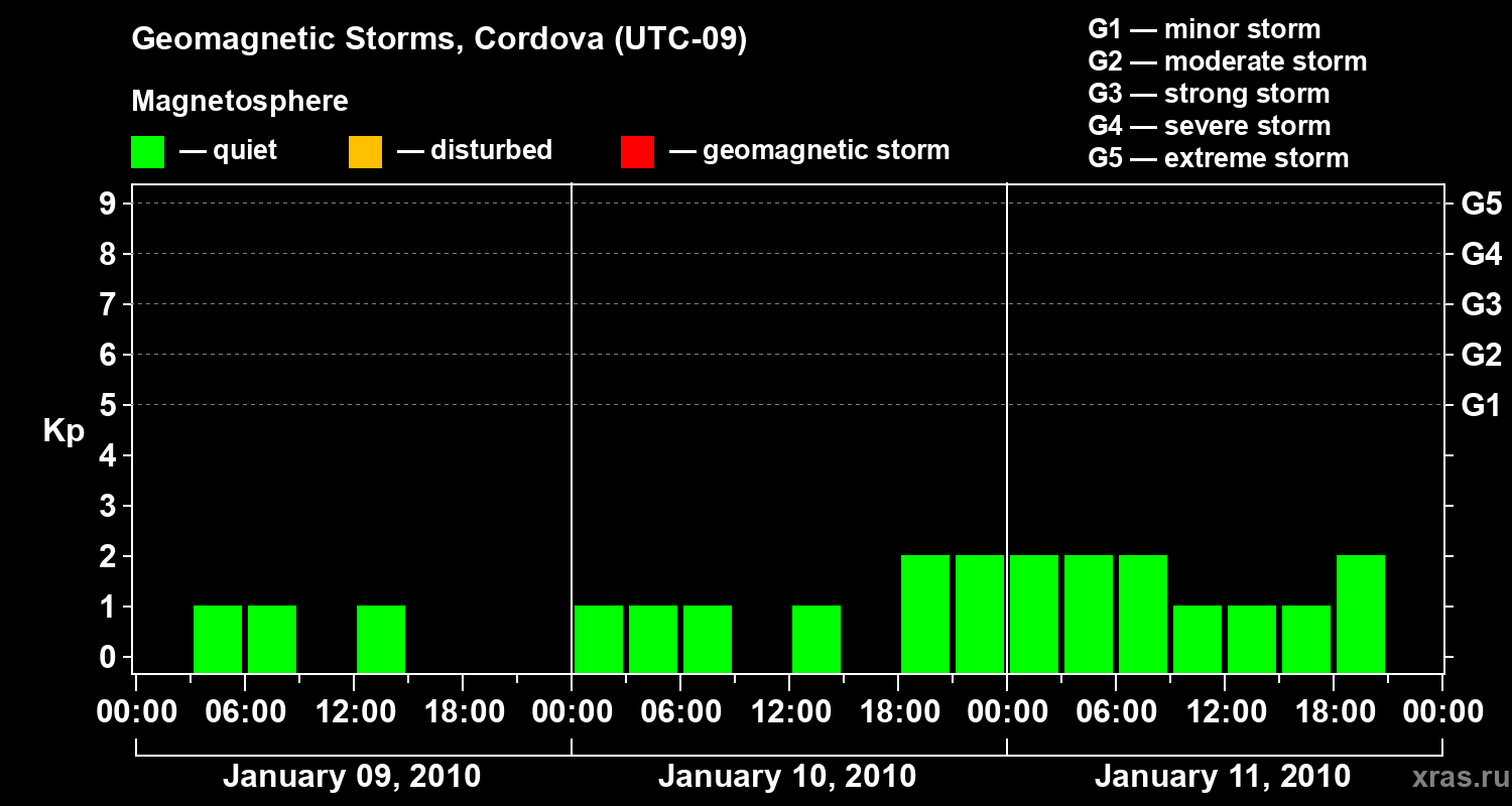 Geomagnetic storms in Cordova — Jan 11, 2010