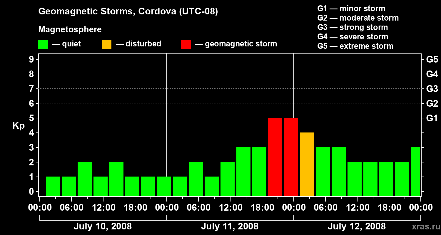 Geomagnetic storms in Cordova — Jul 12, 2008