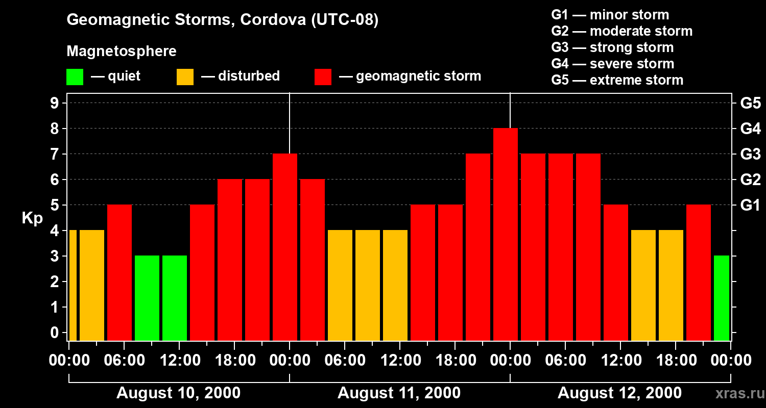 Geomagnetic storms in Cordova — Aug 12, 2000
