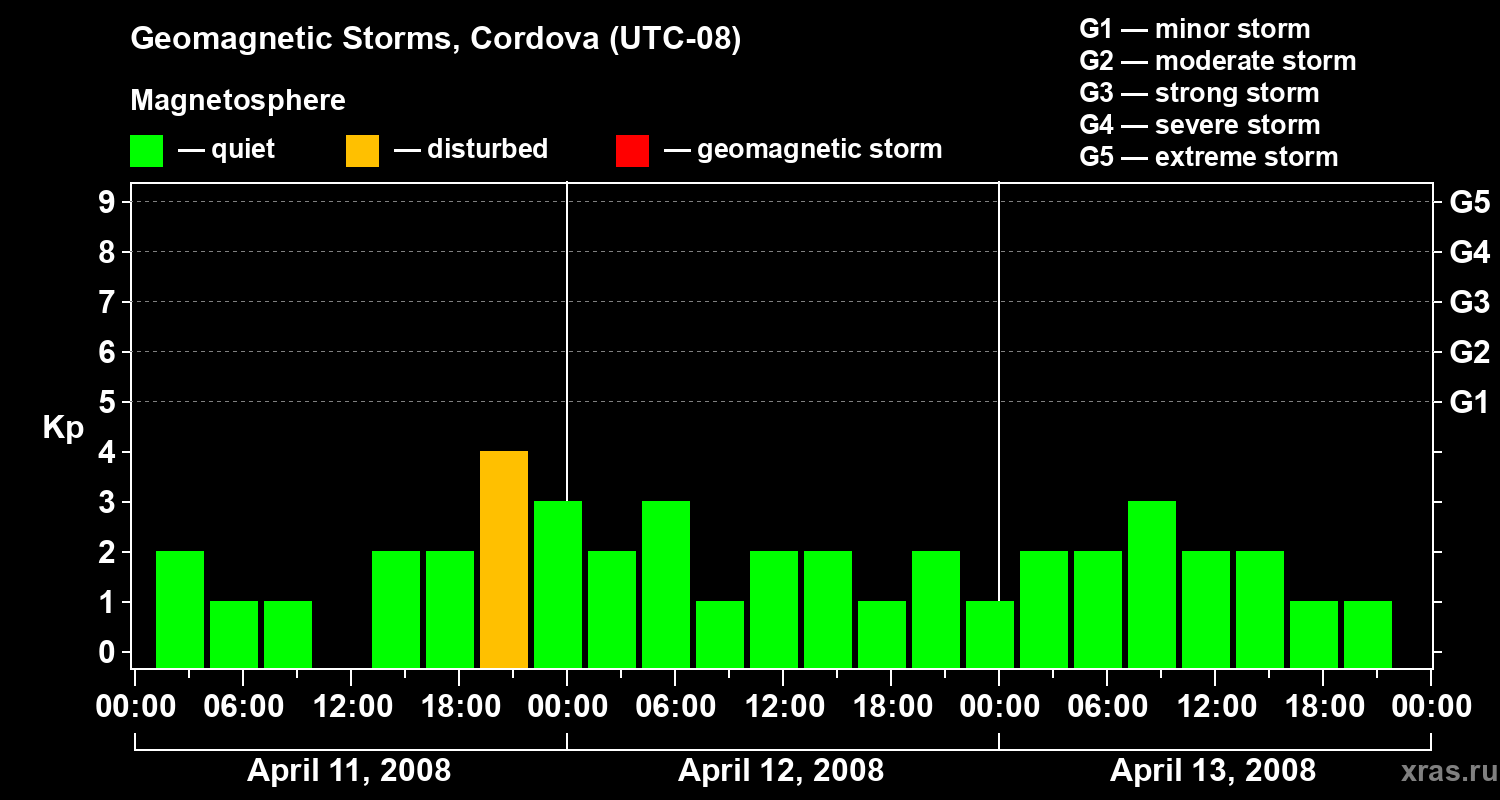 Geomagnetic storms in Cordova — Apr 13, 2008