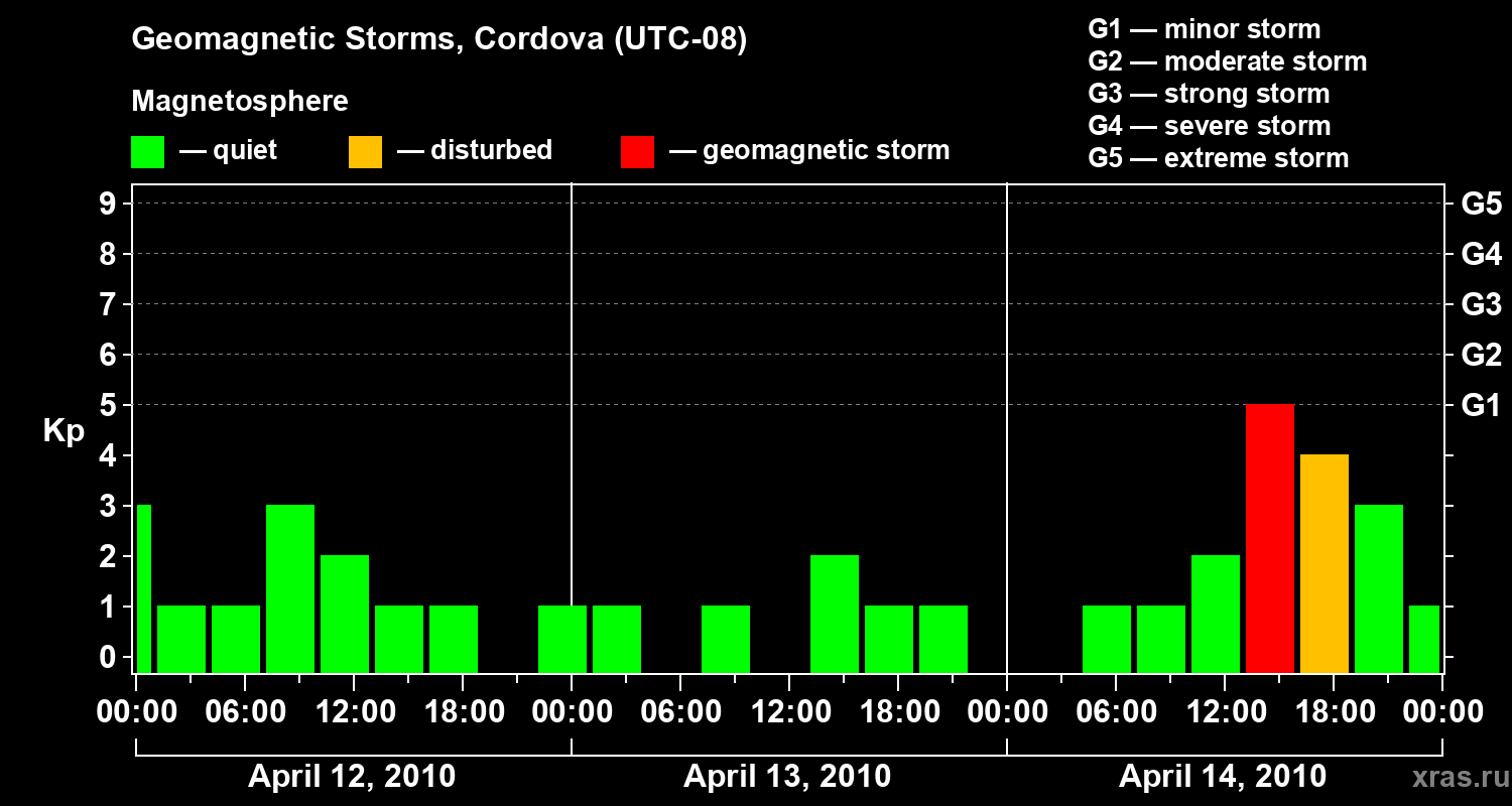 Geomagnetic storms in Cordova — Apr 14, 2010