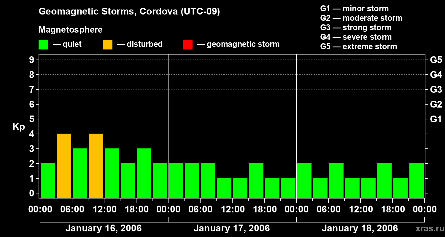 Geomagnetic storms in Cordova — Jan 18, 2006
