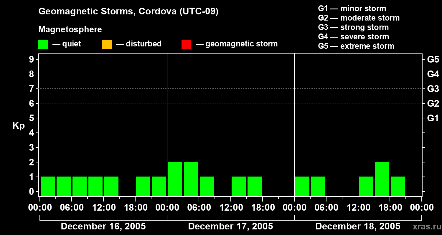 Geomagnetic storms in Cordova on Dec 18, 2005