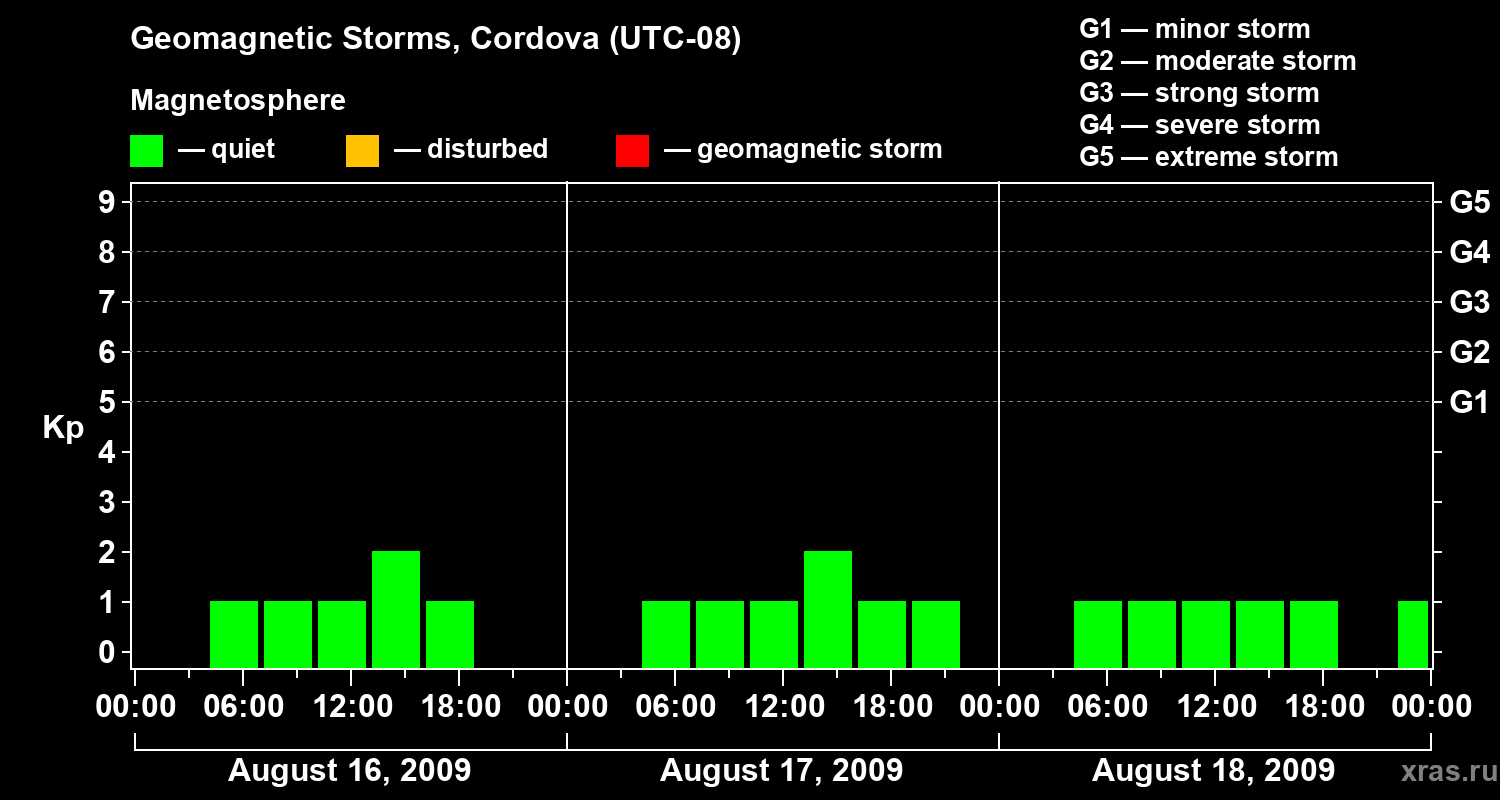 Geomagnetic storms in Cordova — Aug 18, 2009