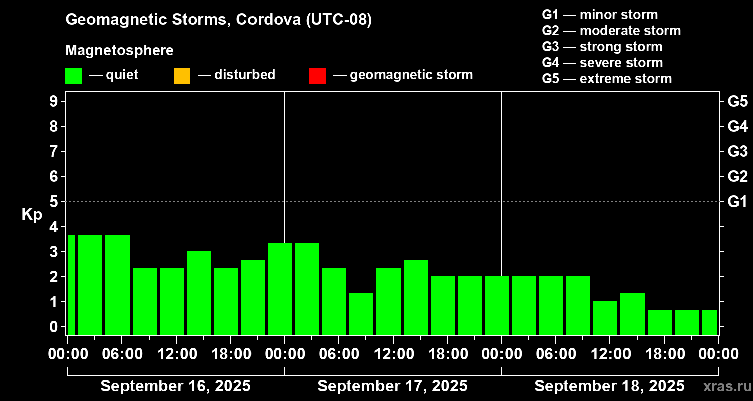 Geomagnetic storms in Cordova — Sep 18, 2025