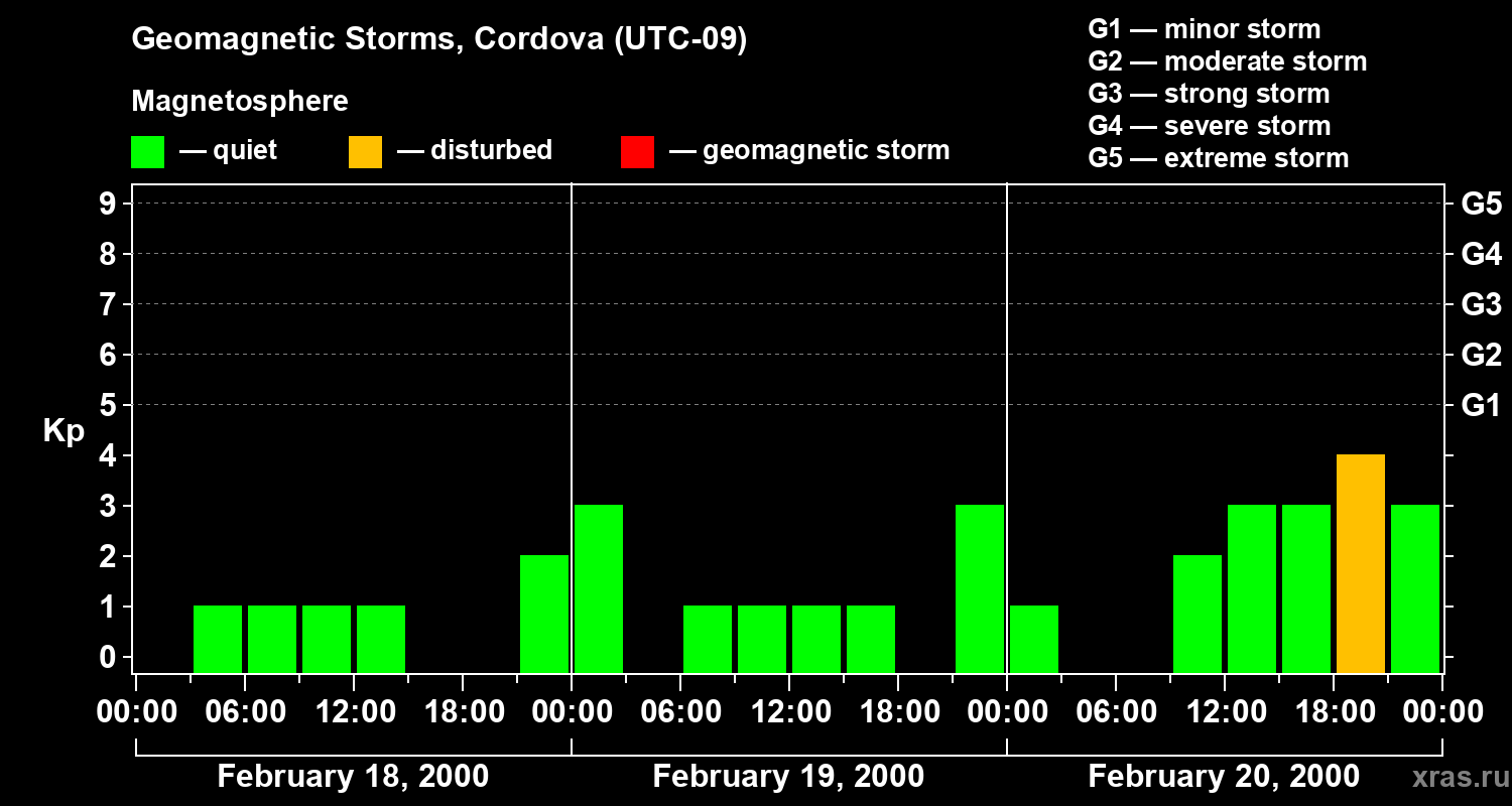 Geomagnetic storms in Cordova — Feb 20, 2000
