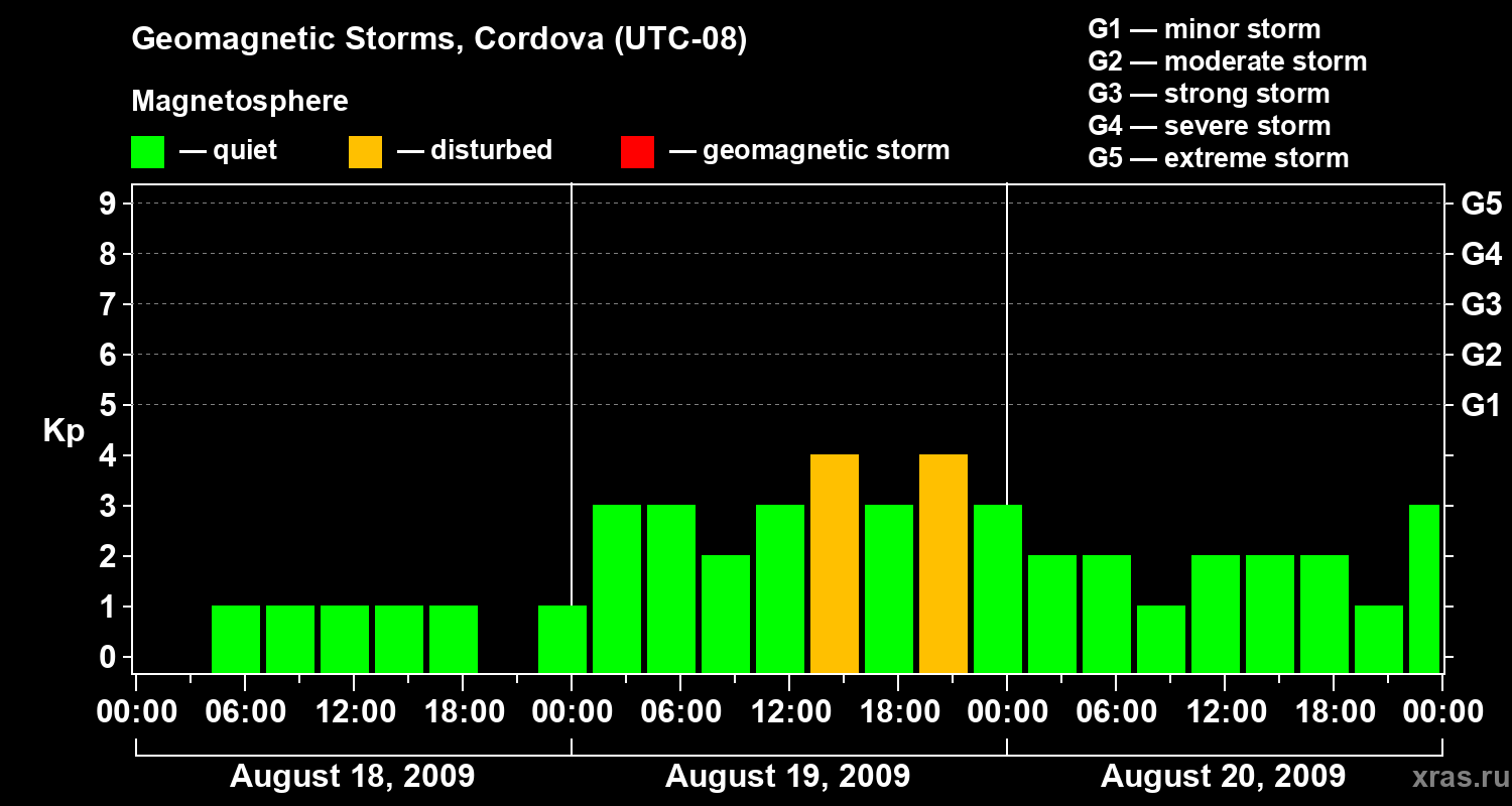 Geomagnetic storms in Cordova — Aug 20, 2009