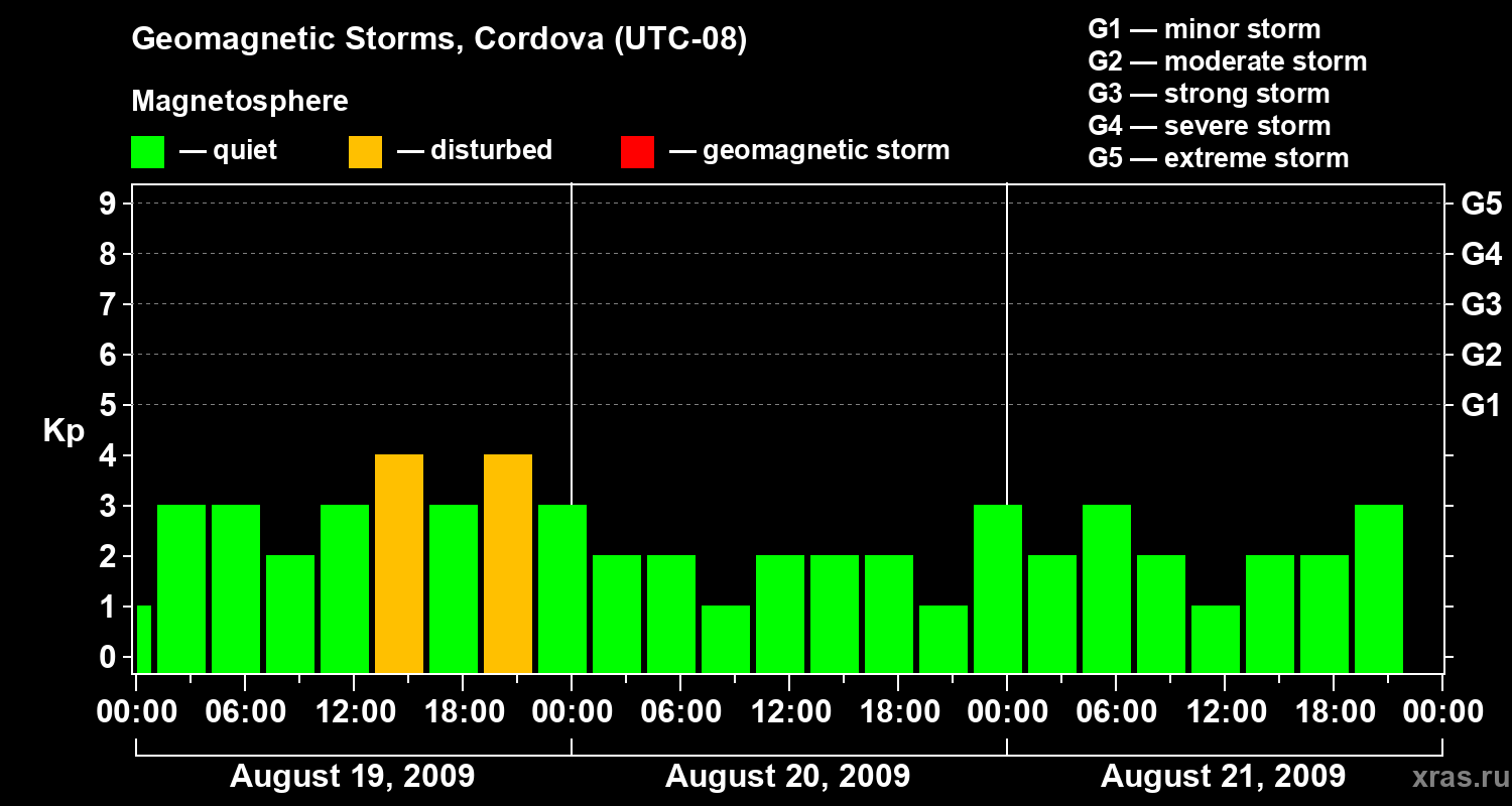 Geomagnetic storms in Cordova — Aug 21, 2009