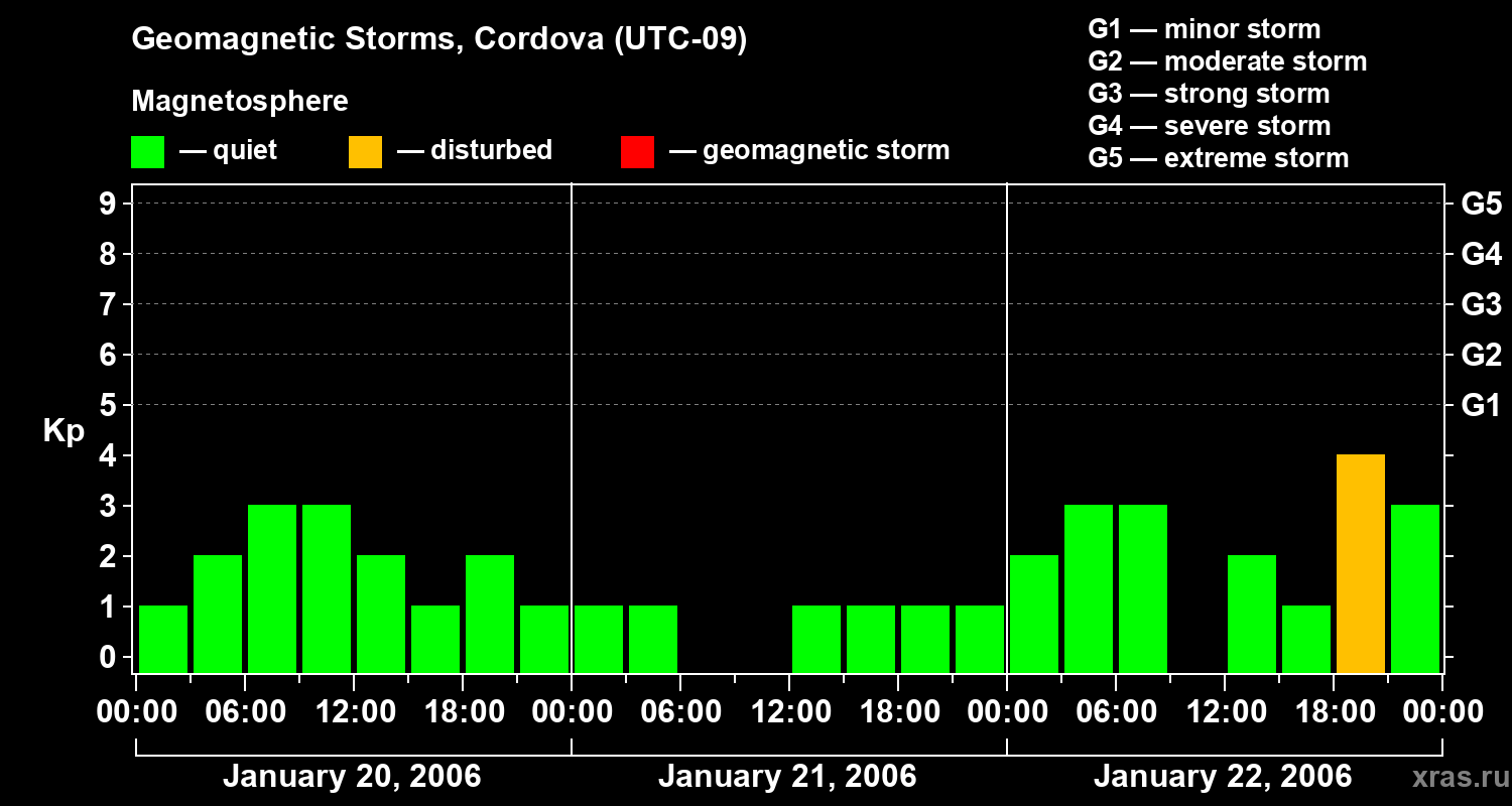 Geomagnetic storms in Cordova — Jan 22, 2006
