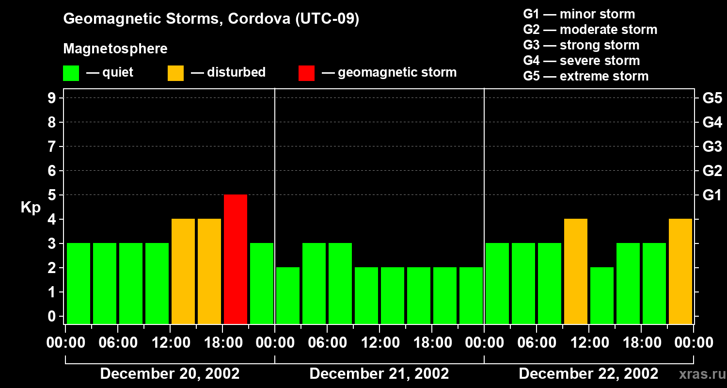 Geomagnetic storms in Cordova — Dec 22, 2002