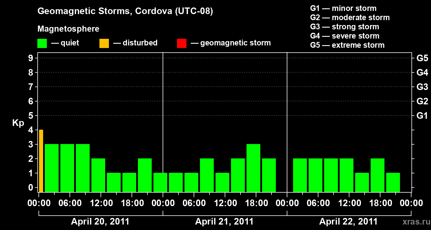 Geomagnetic storms in Cordova — Apr 22, 2011