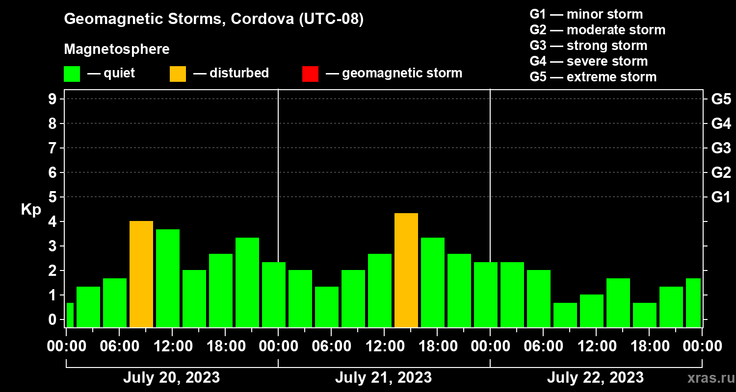 Geomagnetic storms in Cordova — Jul 22, 2023