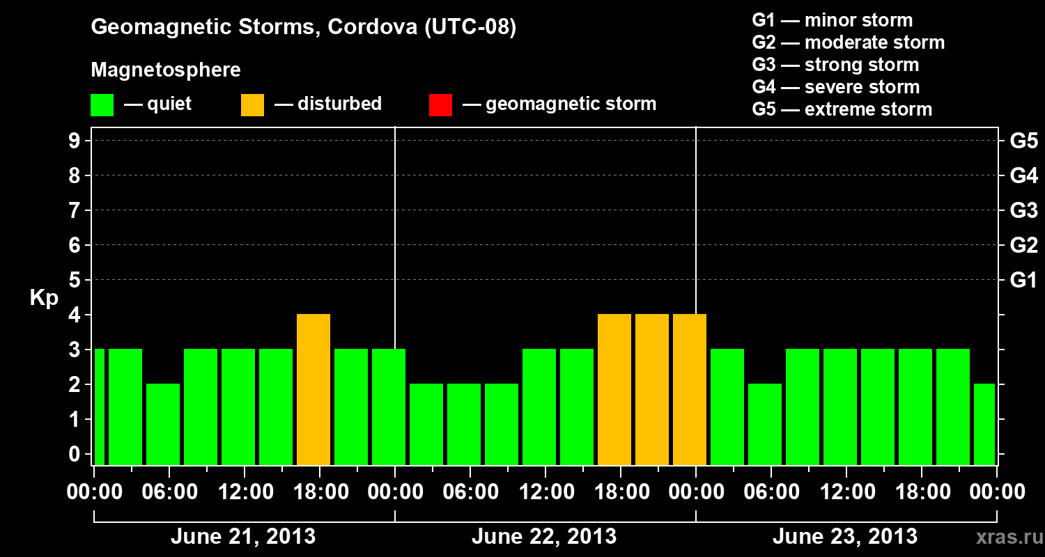 Geomagnetic storms in Cordova — Jun 23, 2013