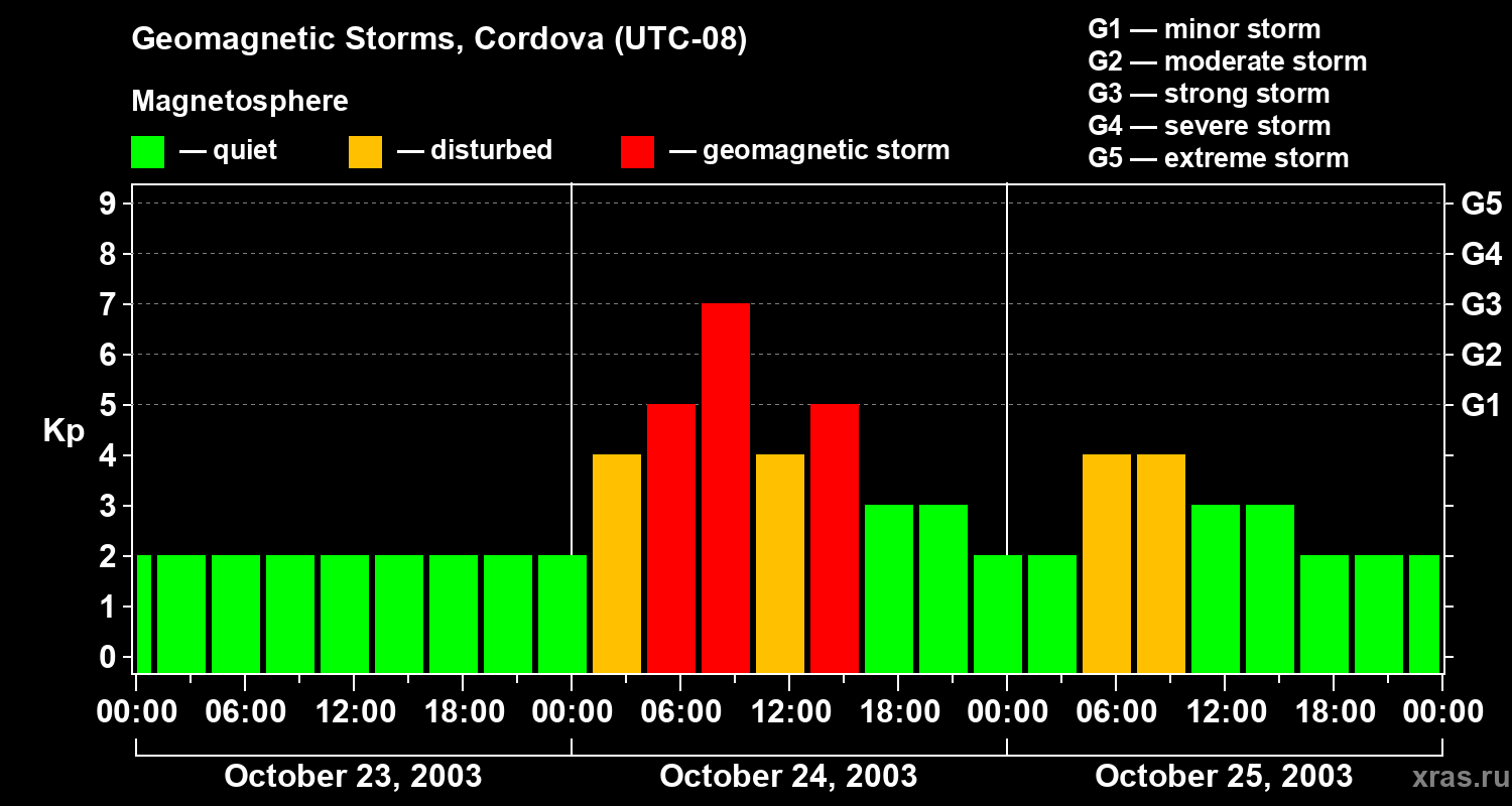 Geomagnetic storms in Cordova — Oct 25, 2003
