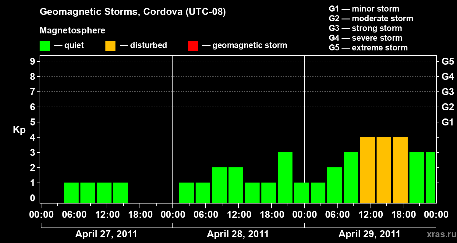 Geomagnetic storms in Cordova — Apr 29, 2011