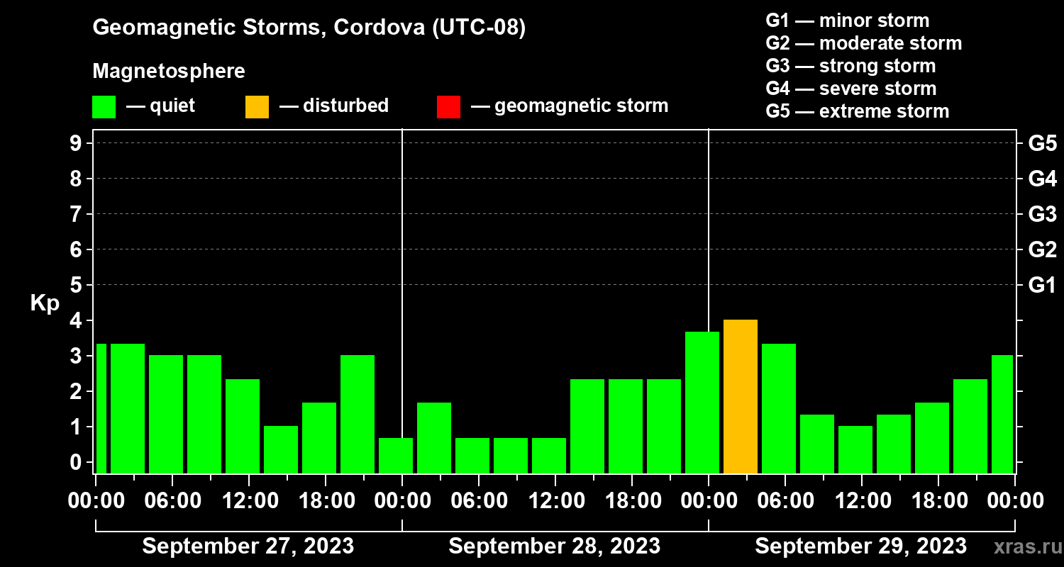 Geomagnetic storms in Cordova — Sep 29, 2023