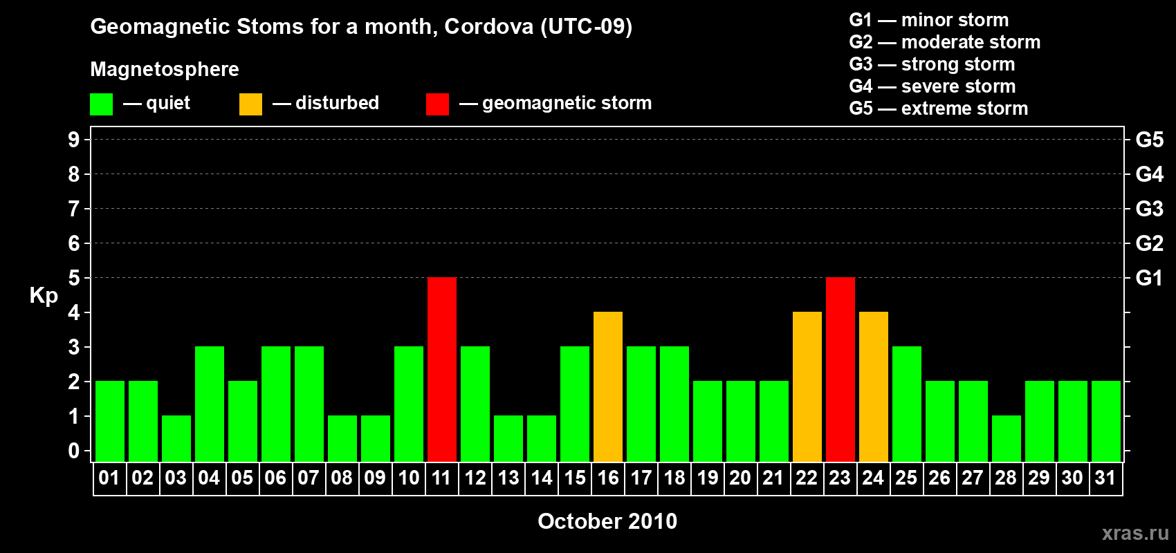 Geomagnetic storms in Cordova — Oct 31, 2010