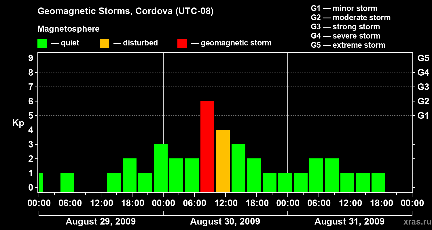 Geomagnetic storms in Cordova — Aug 31, 2009