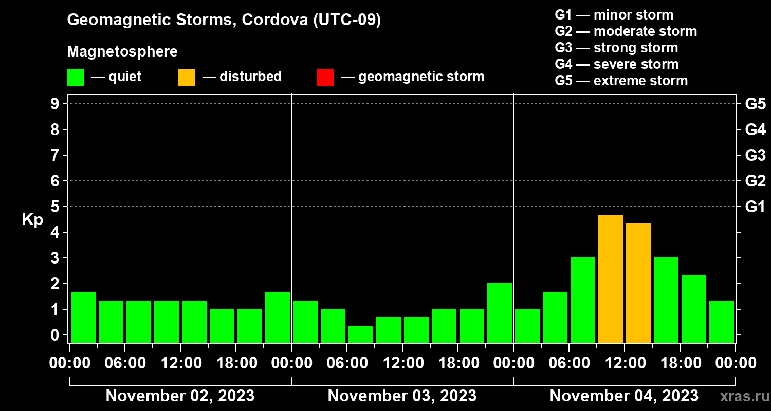 Geomagnetic storms in Cordova — Nov 04, 2023