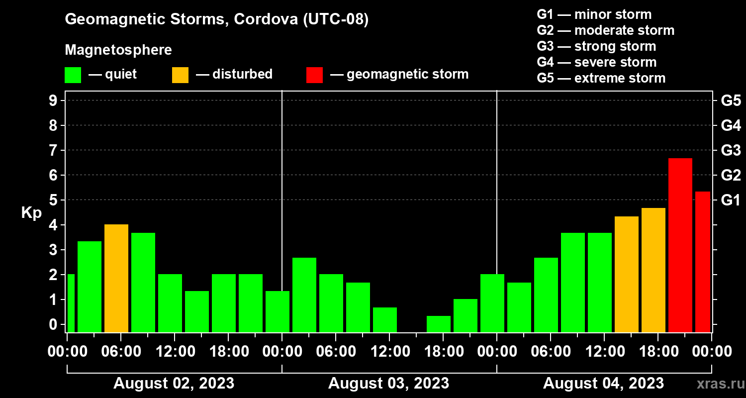 Geomagnetic storms in Cordova — Aug 04, 2023