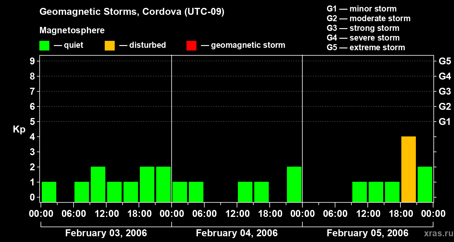 Geomagnetic storms in Cordova — Feb 05, 2006