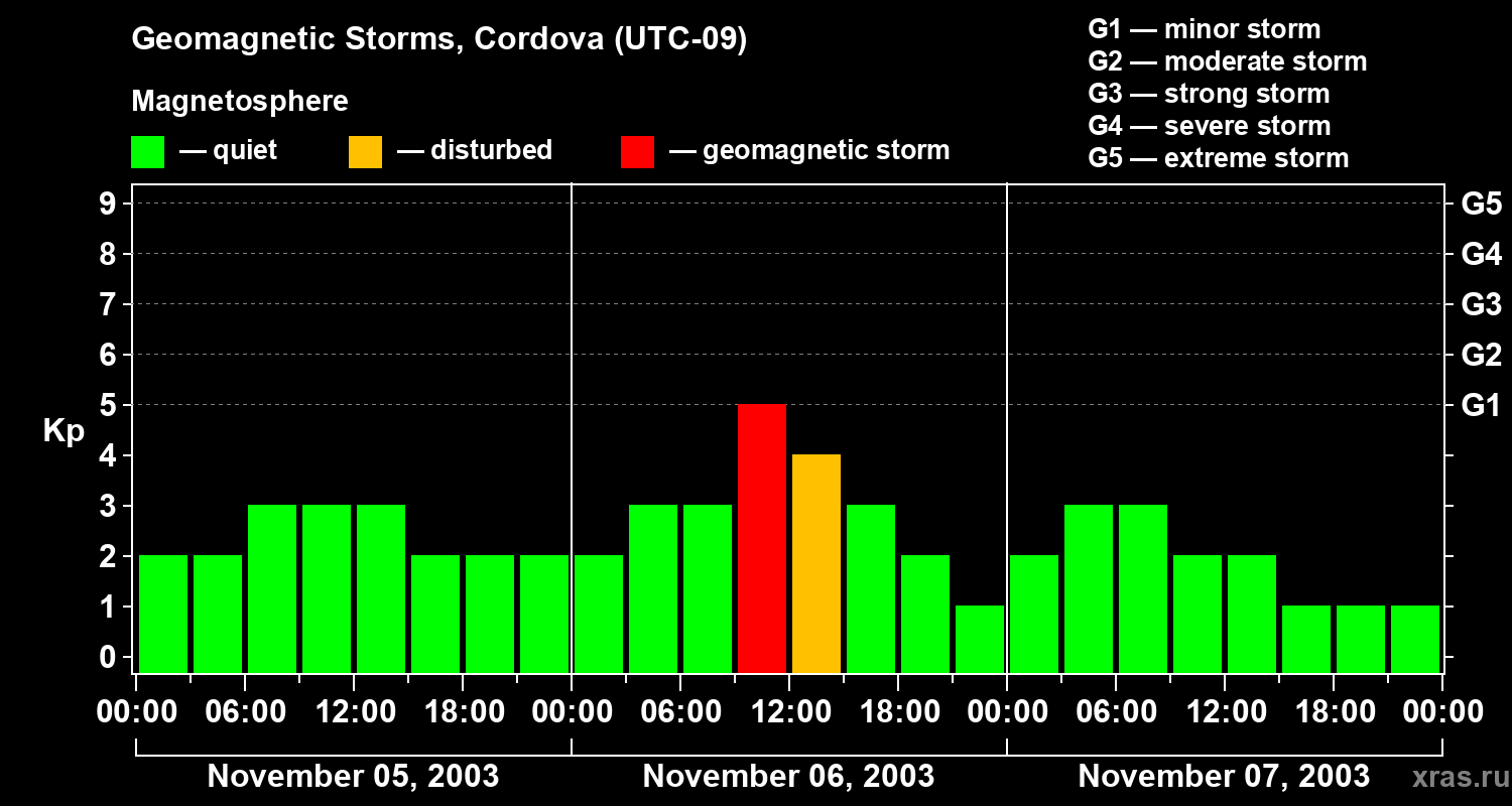 Geomagnetic storms in Cordova — Nov 07, 2003