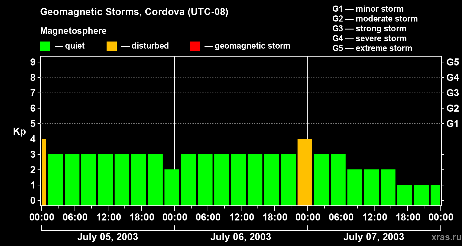 Geomagnetic storms in Cordova — Jul 07, 2003