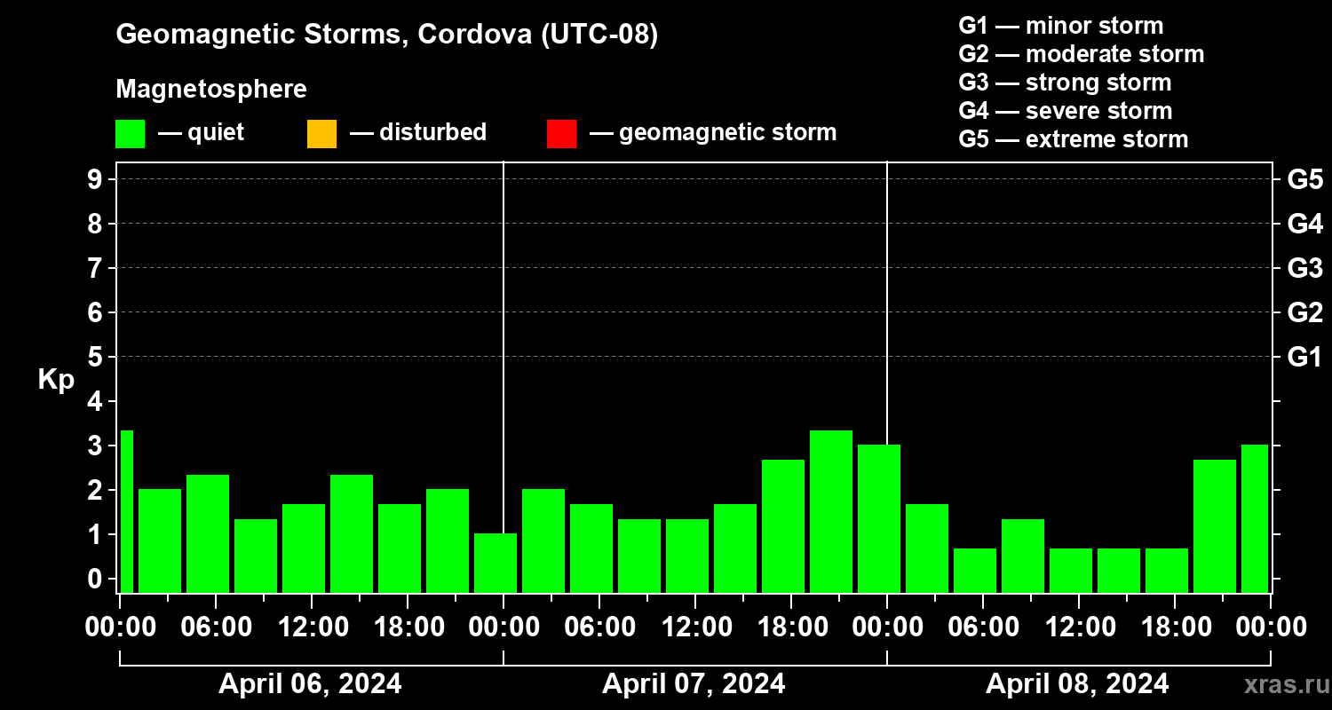 Geomagnetic storms in Cordova on Apr 08, 2024