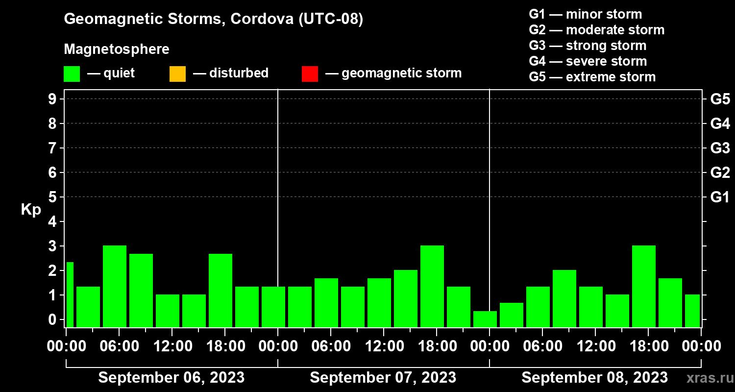 Geomagnetic storms in Cordova on Sep 08, 2023