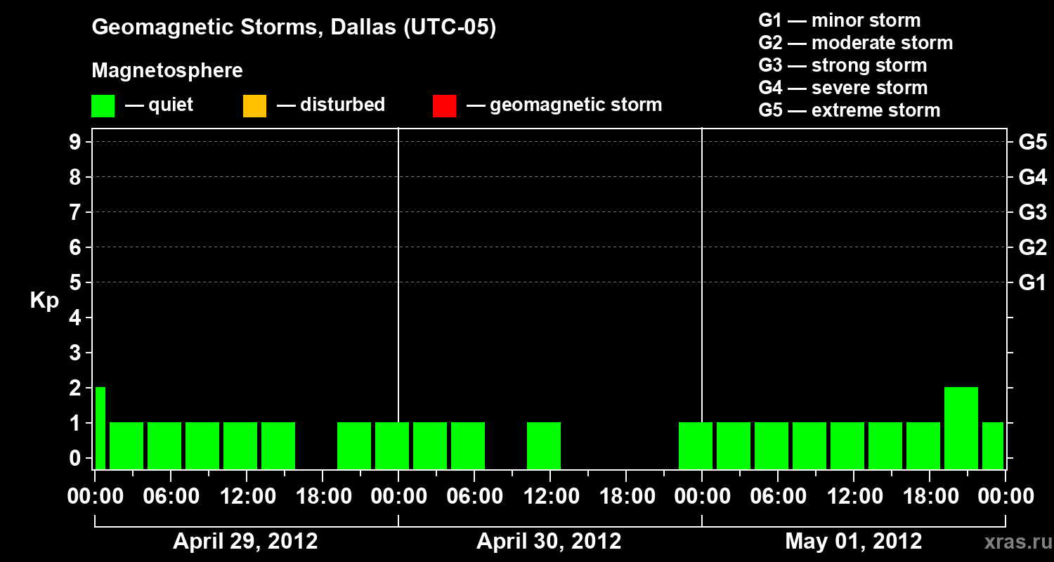 Changes in the geomagnetic index Kp from April 29 to May 1, 2012 for mid latitudes