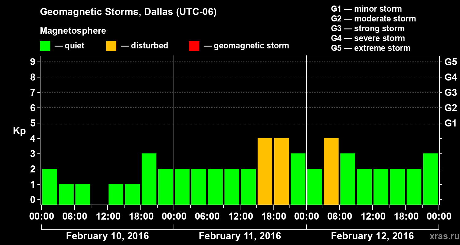 Geomagnetic storms in Dallas in February 2016
