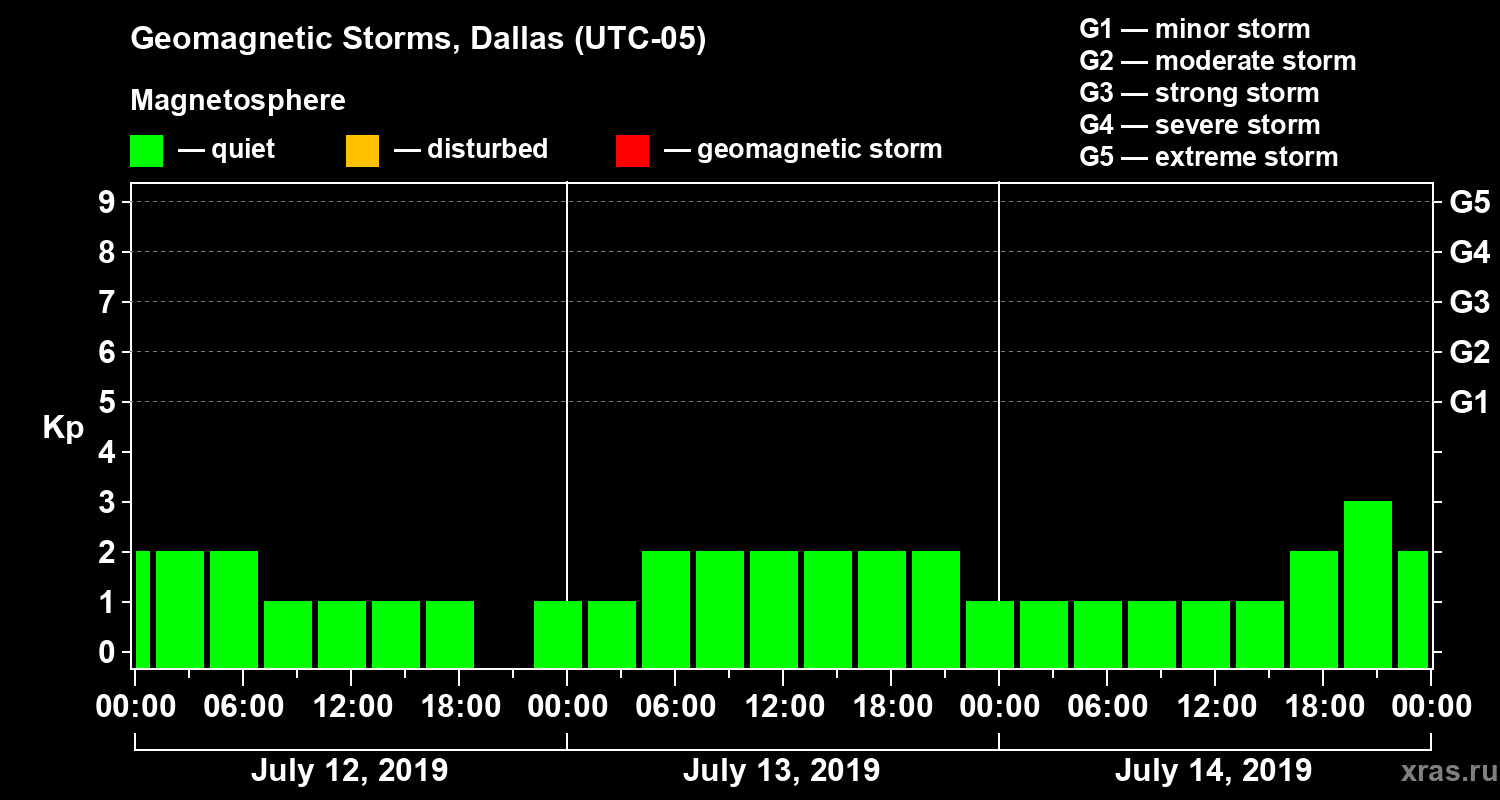 Geomagnetic storms in Dallas in July 2019